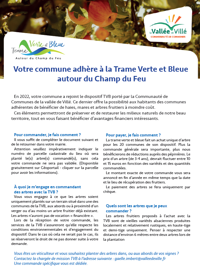Une réunion de présentation des différentes variétés de fruitiers proposés à l’achat avec la Trame Verte et Bleue sera organisée