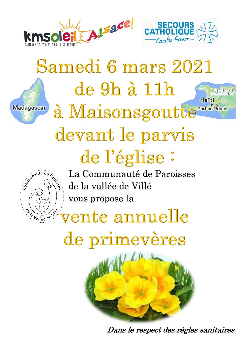 MaisonsgoutteLa vente annuelle de primevères se fera le samedi 6 mars au prix de 2 euros. La moitié des bénéfices contribuera à un projet à Haïti pour la construction d’une cantine d’école, le soutien à une école à Madagascar et l’autre partie aidera les enfants défavorisées d’Alsace à partir en colonie de vacances. Nous vous remercions […]